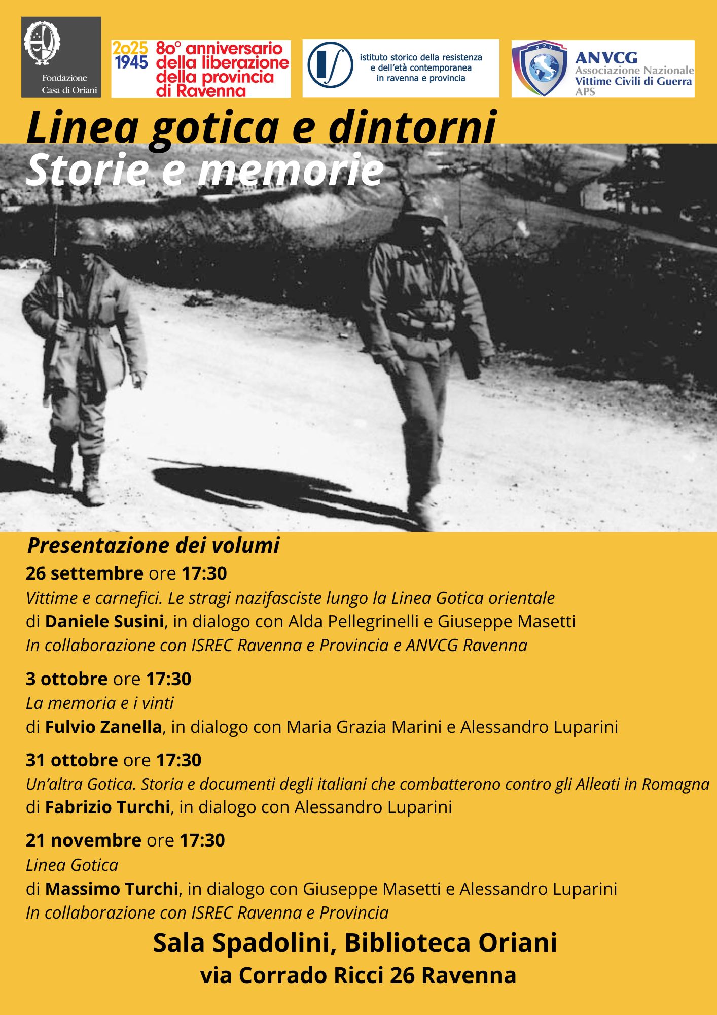 La presentazione, organizzata in collaborazione con l’Istituto Storico della Resistenza e dell’Età Contemporanea in Ravenna e Provincia e l’ANVCG (Associazione Nazionale Vittime Civili di Guerra) Sezione di Ravenna, sarà introdotta dai saluti di Alessandro Luparini, Direttore della Fondazione Casa di Oriani, e Mario Mateucci, Presidente ANVCG Sezione di Ravenna. Susini, storico, scrittore e formatore sui temi della memoria del Novecento, ne discuterà con il Direttore dell’Istituto Storico Giuseppe Masetti e Alda Pellegrinelli, Presidente della AICC (Associazione Italiana Cultura Classica) e Promotore di Pace ANVCG Sezione di Ravenna.