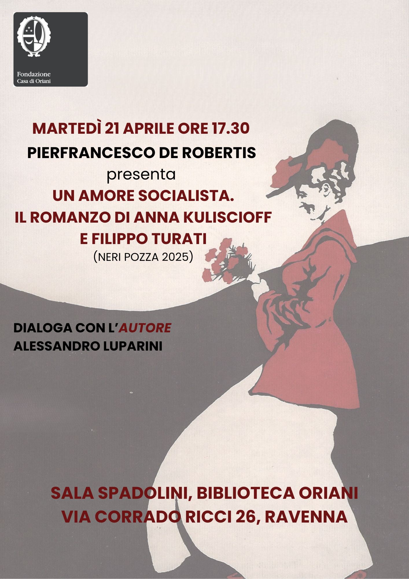Si terrà martedì 21 aprile, ore 17.30, presso la Sala “Spadolini” della Biblioteca di Storia Contemporanea “A Oriani”, la presentazione del volume di Pierfrancesco De Robertis, Un amore socialista. Il romanzo di Anna Kuliscioff e Filippo Turati (Neri Pozza 2025). Il libro racconta, in forma di romanzo storico, la lunga relazione fra Anna Kuliscioff e Filippo Turati, due delle figure fondative del socialismo riformista italiano, dal loro primo sodalizio nel 1885, da cui nacque l’esperienza della rivista «La Critica Sociale», fino alla morte di lei nel 1925, nel clima del fascismo trionfante dopo la drammatica vicenda del rapimento e dell’assassinio di Giacomo Matteotti. Scorrono così, nelle pagine di De Robertis, quarant’anni di vicende italiane lette attraverso la lente di un rapporto che fu al tempo stesso una intensa storia d’amore e una straordinaria avventura politica.